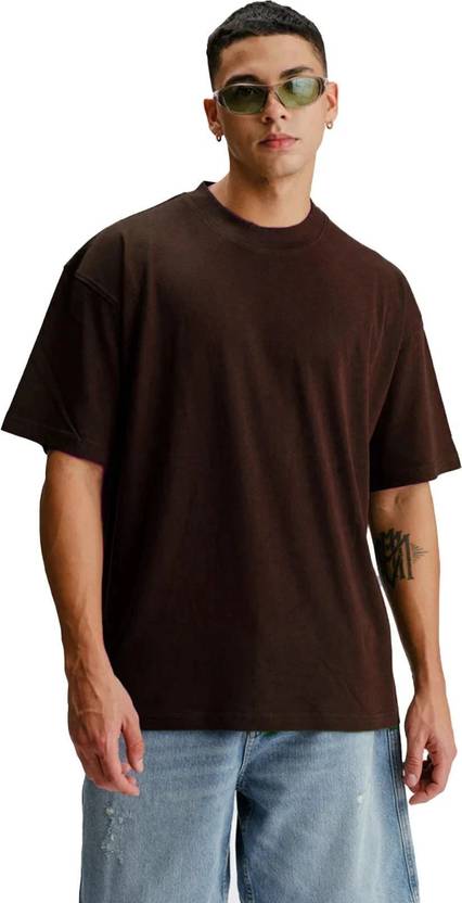 soni enterprises Men Solid Round Neck Cotton Blend Brown T-Shirt