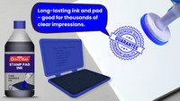 This stamp pad ink boasts a striking shade, ensuring that your stamped marks are clear and noticeable. The vibrant colour stands out on various surfaces, making it ideal for documents, crafts, and more. Whether you're using it for business or creative projects, the bold hue enhances visibility and adds a professional touch to your work. This distinct shade ensures that your stamps are easily readable and make a lasting impression.