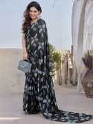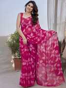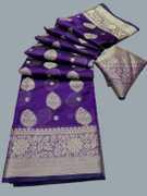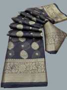 Sonika Fashions Printed Kalamkari Cotton Silk Saree (Blue)