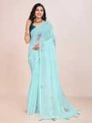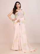 Made from high-quality banarasi silk fabric., Soft, lightweight, and drapes beautifully., Intricate floral design woven in vibrant colors., Comes with an assemblage blouse piece made from the same fabric., Free size., Dry clean only.