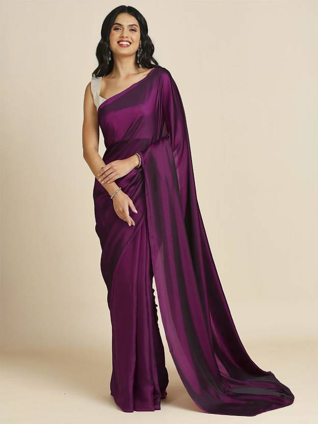 Sonika Solid/Plain Bollywood Silk Blend Saree (Magenta)
