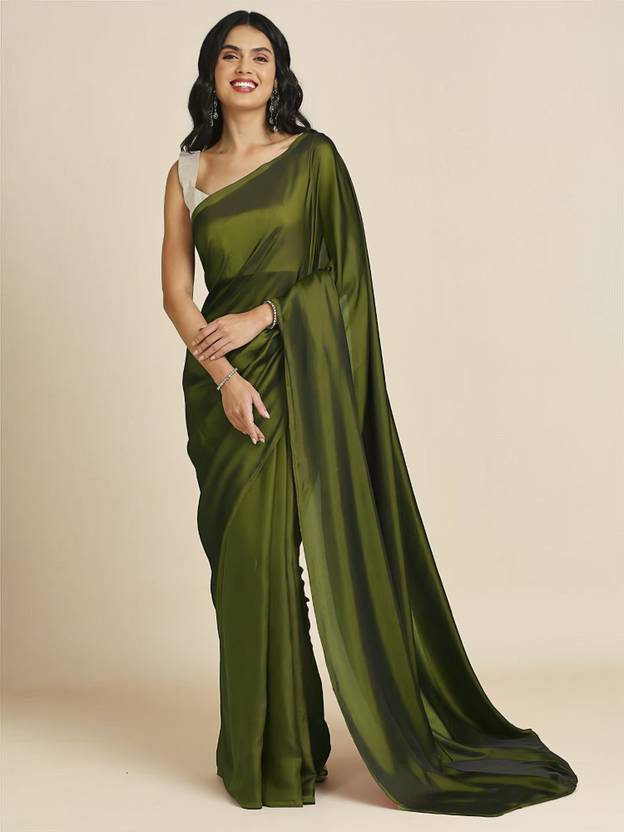 Sonika Solid/Plain Bollywood Silk Blend Saree (Light Green)