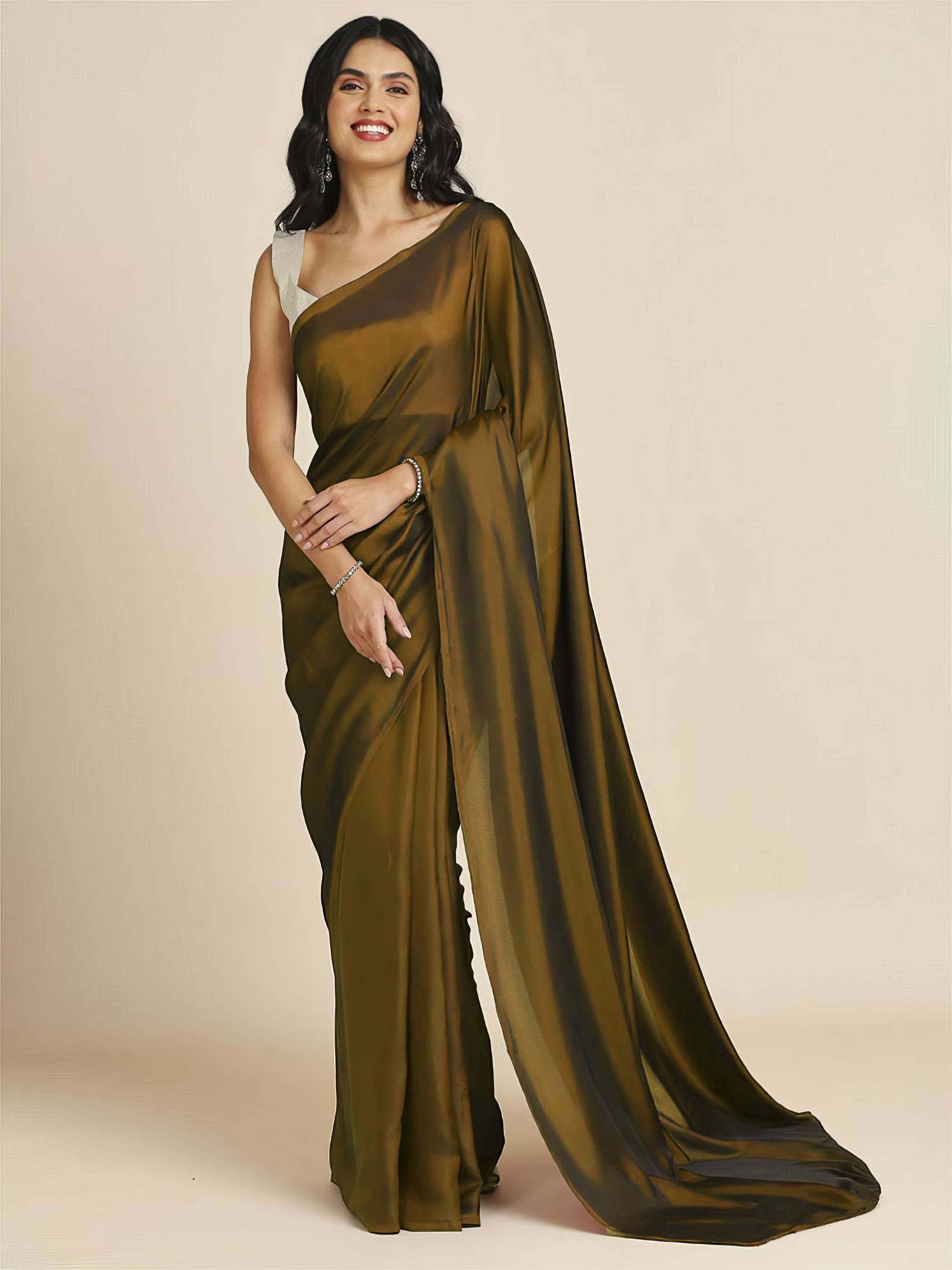 Sonika Solid/Plain Bollywood Silk Blend Saree (Gold)
