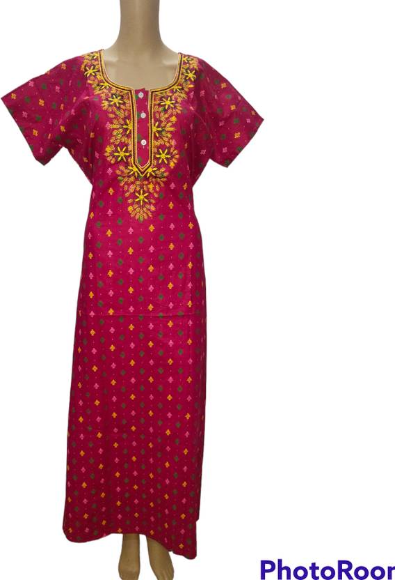 Sonira Lifestyles brings to you a lovely piece of nighty.It is made with 100% cotton. Embroidery work on front.it is 60 inch length,Light weight.You feel comfortable when you wear.