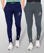 Pack of 2 Men Solid Blue, Grey Track Pants
