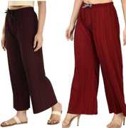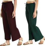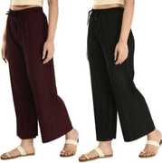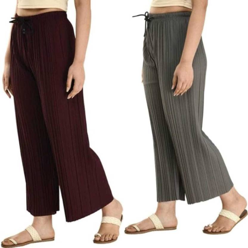 Pack of 2 Women Relaxed Brown, Grey Lycra Blend Trousers