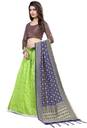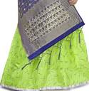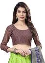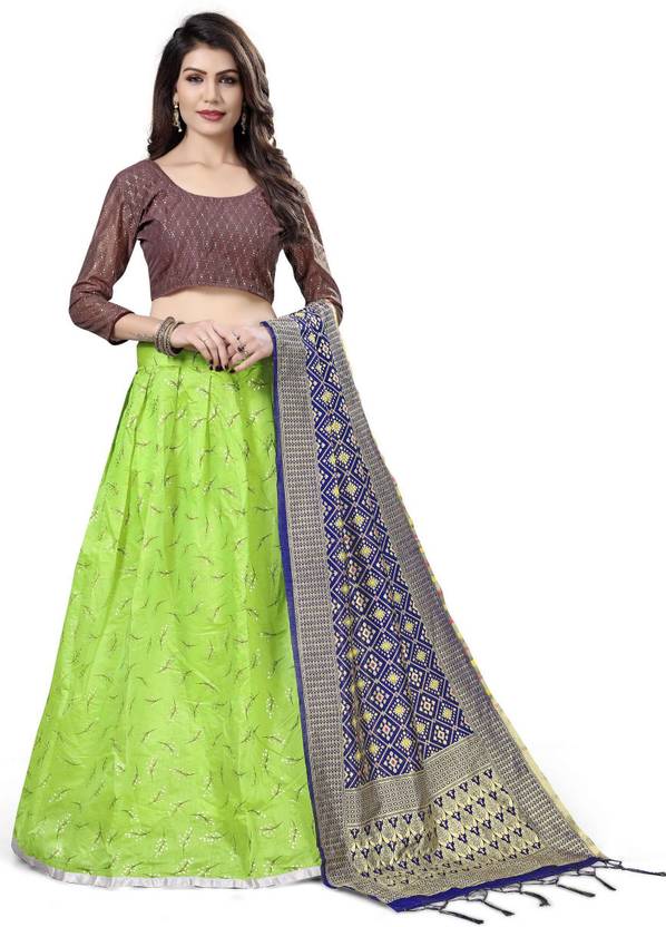 Lehenga Fabric: Art Silk Fabric, Blouse Fabric: Silk Lehenga Stitched waist size inch Height: inch Blouse is unstitched fabric 80cm Dupatta : Width: 24 inch Length: 2.1 meter Fabric: banarasi silk choli is unstitched and 0.8 meter fabric is there for choli.