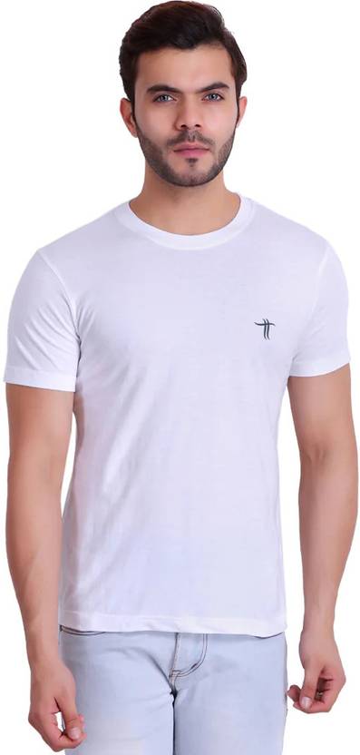 Men Solid Round Neck Cotton Blend White T-Shirt
