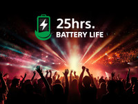 Keep the music going for up to 25 hours. Quick charge for 10 minutes and get up to 2 hours of playtime.