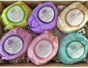 Our bath bombs come in a beautiful box, ready for you to present or try placing them by your tub with a loofa and a vase of flowers to give a “spa-like” feel to your own space!
