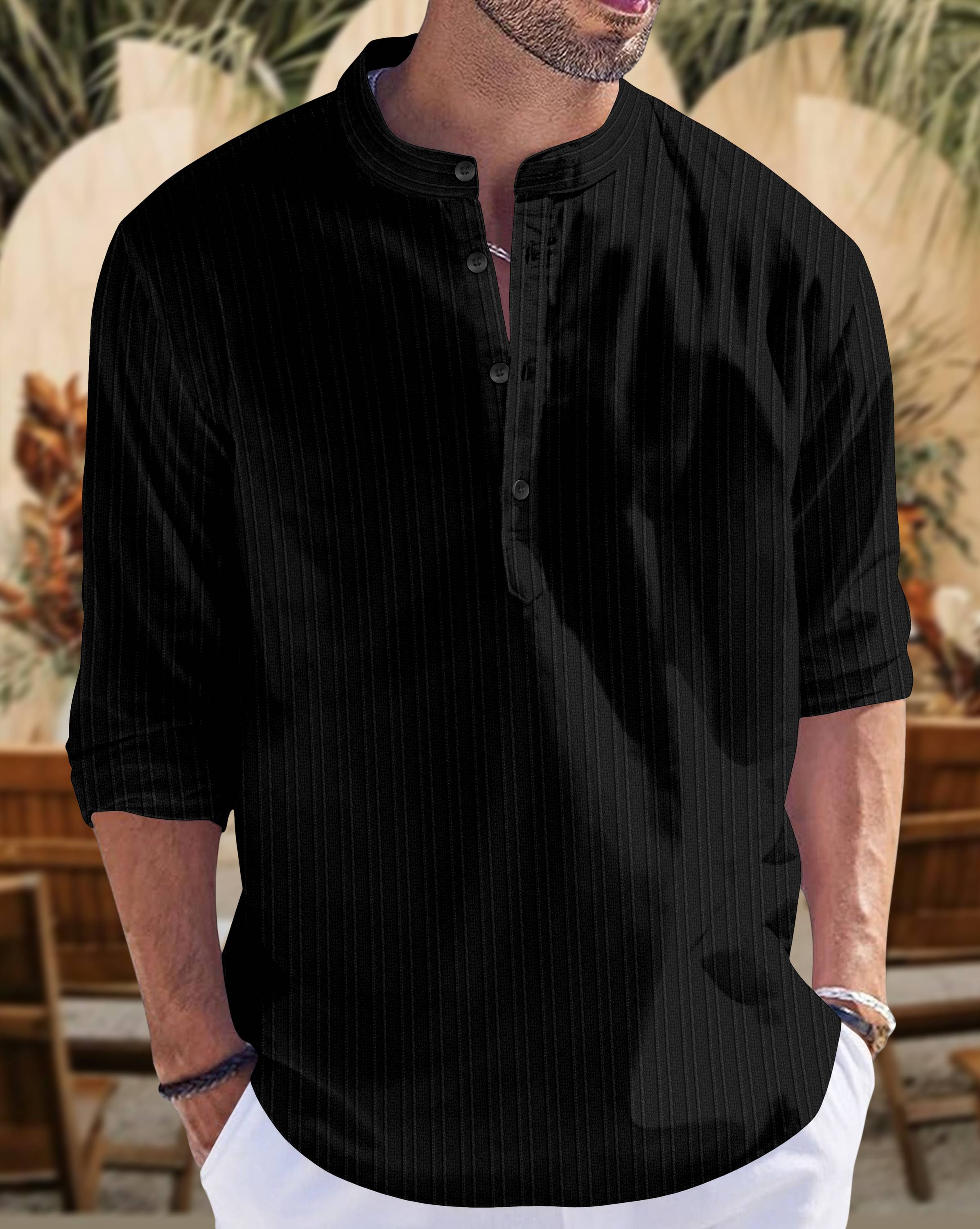 SOPANI Men Self Design Straight Kurta (Black)