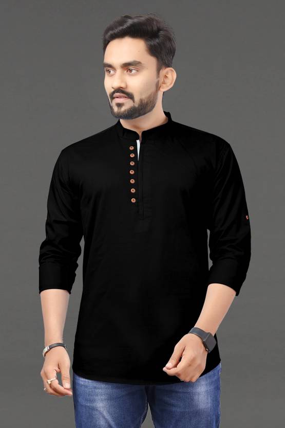 RAHUL LOOK Men Solid Straight Kurta (Black)