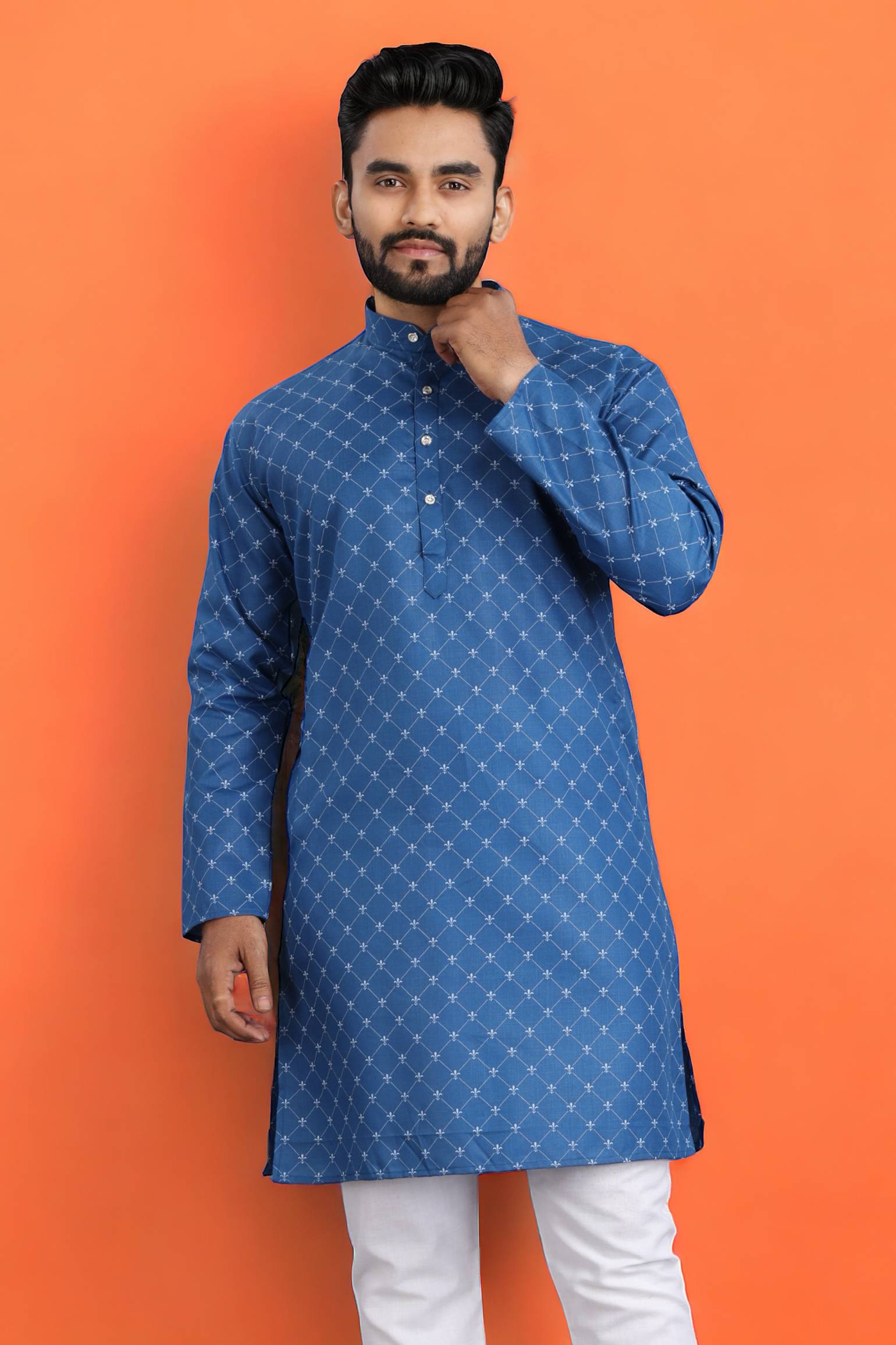 SOPANI Men Solid Straight Kurta (Blue)
