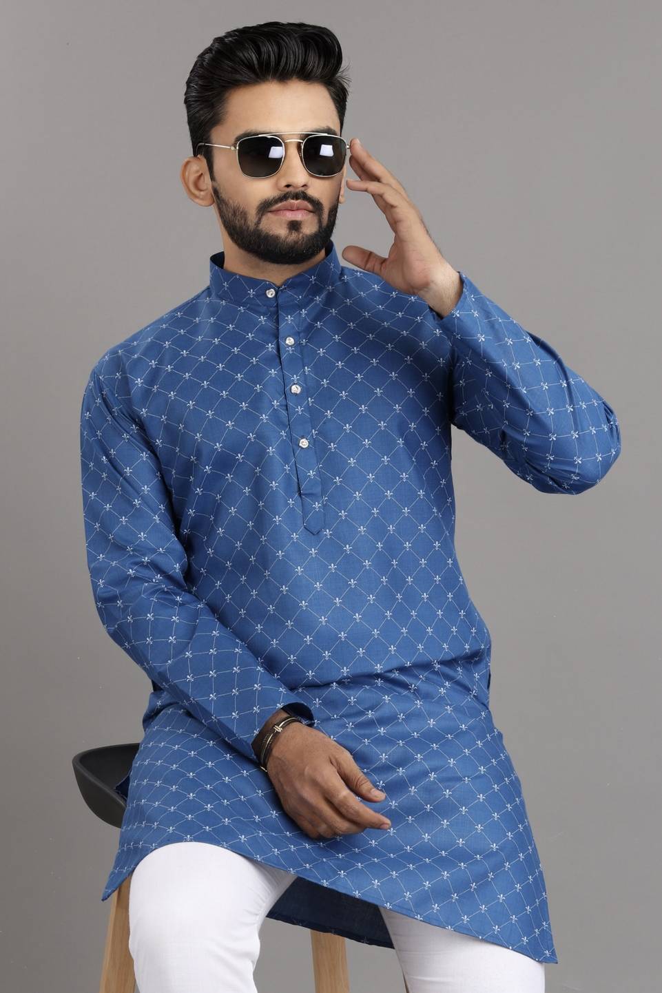 SOPANI Men Solid Straight Kurta (Blue, White)