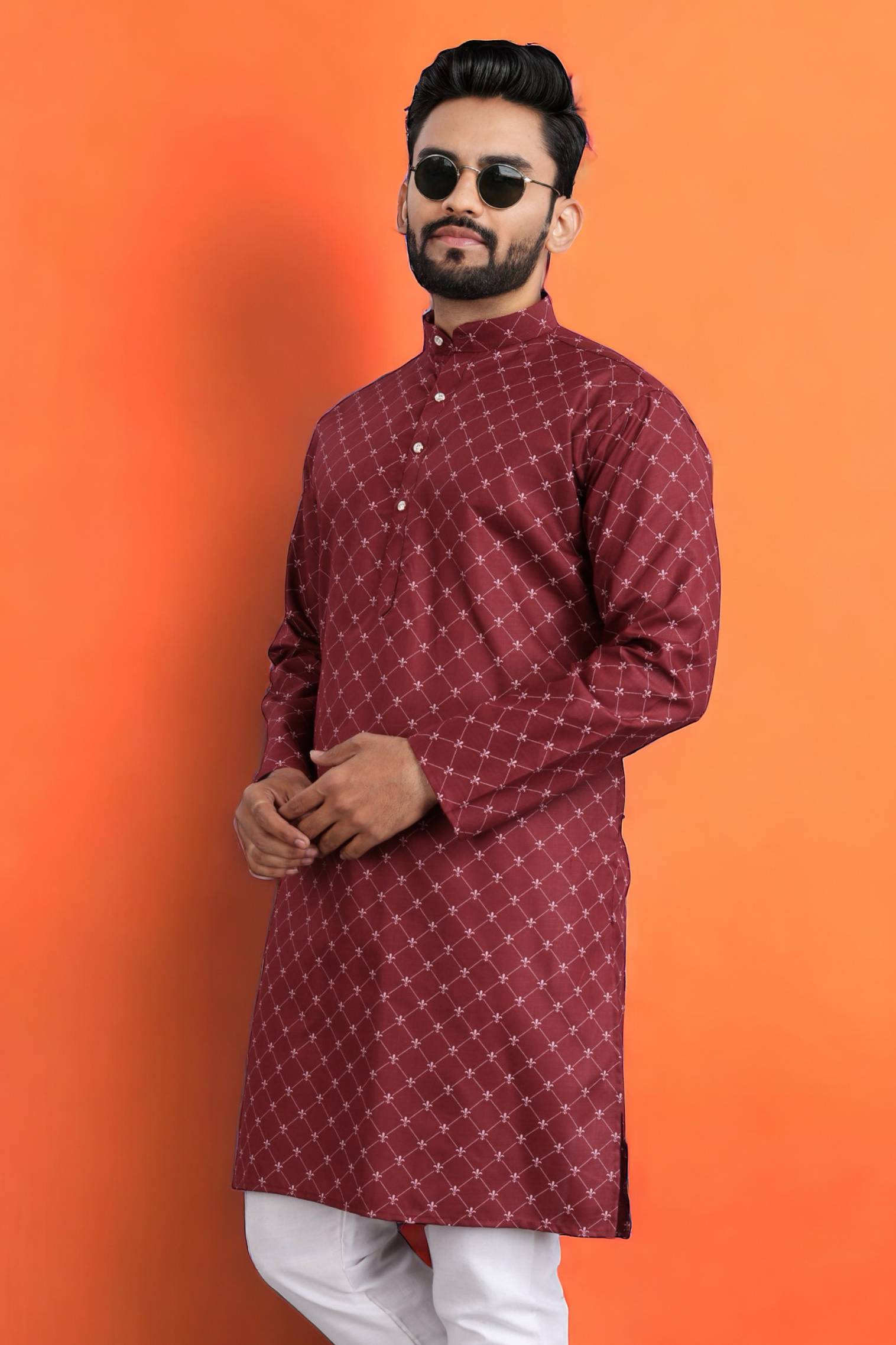 SOPANI Men Solid Straight Kurta (Maroon, White)
