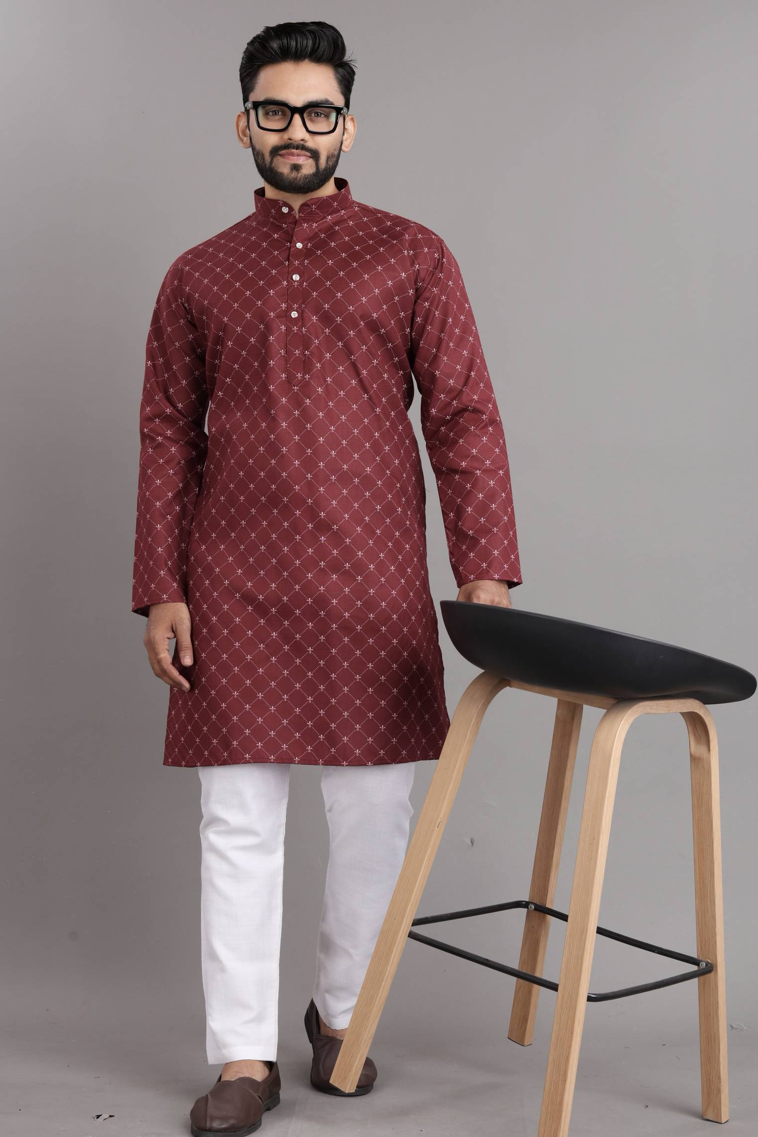 SOPANI Men Solid Straight Kurta (Maroon, Beige)