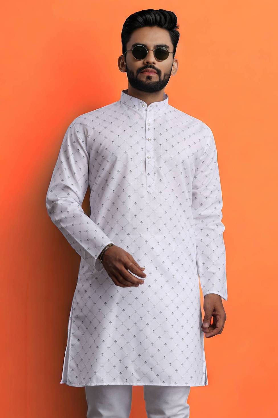 Mens Printed Kurta all new design white colour line design new print for all ages