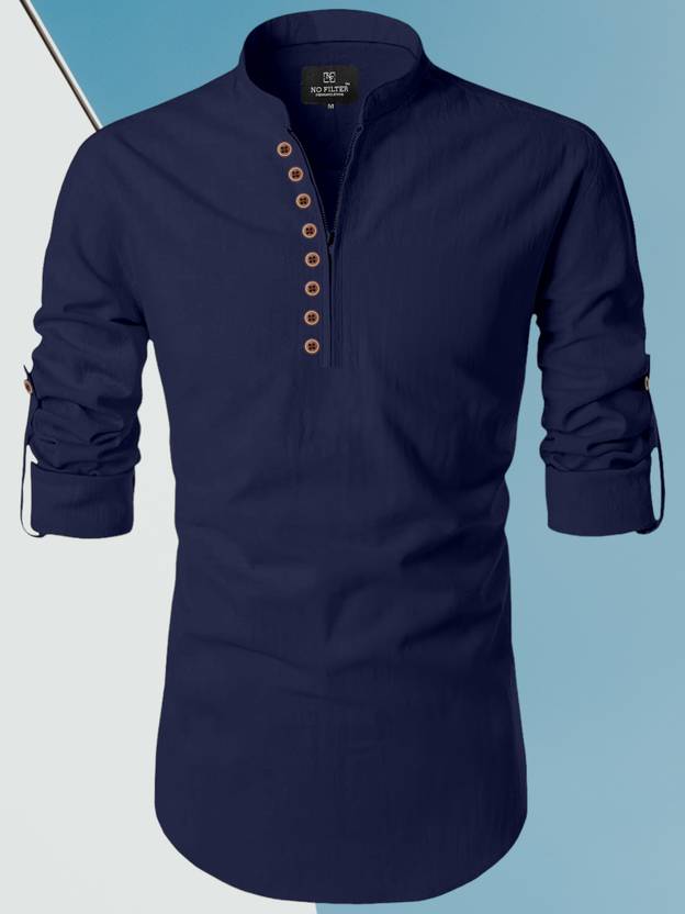 SOPANI Men Solid Straight Kurta (Dark Blue)
