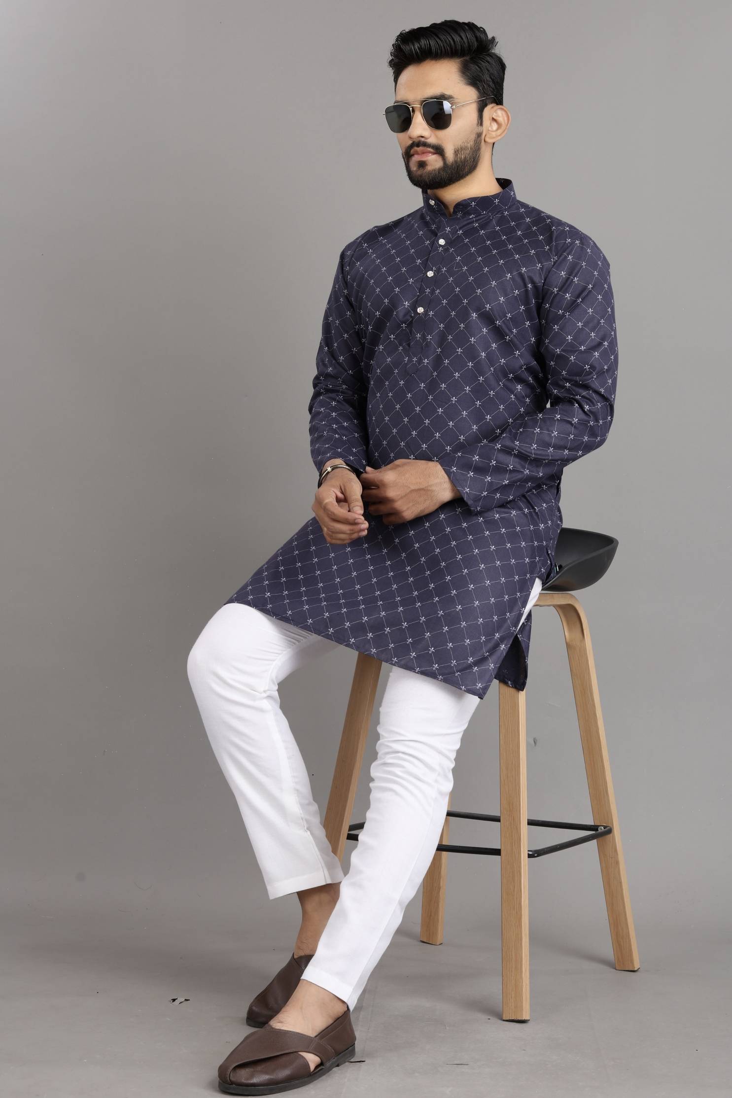 SOPANI Men Solid Straight Kurta (Dark Blue)
