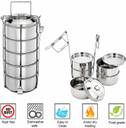 Stainless Steel Thai Patti Tiffin with Plate for Lunch, Office and Picnic