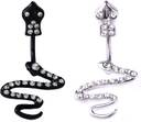 Womens Navel Belly Button Piercing Silver & Black Snake Zircon Ring: Pack of 2