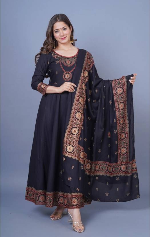 ethnic wardrobe with this stunning Anarkali kurta, crafted from premium rayon fabric for ultimate comfort and style. Designed by SORIYA ENTERPRISES, this piece showcases exquisite gold prints that add a touch of luxury and sophistication. Key Features: Luxurious Fabric: Made from soft, breathable rayon, ensuring comfort for all-day wear. Stunning Design: The Anarkali silhouette flatters every body type, with a flowing skirt that creates an elegant look. Chic Dupatta: Accompanied by a beautifully designed dupatta that enhances the ensemble, perfect for any festive occasion or family gathering. Versatile Style: Ideal for casual outings, weddings, or festive celebrations. Pair with traditional jewelry for a complete look. Easy Care: Machine washable and easy to maintain, making it a practical choice for busy lifestyles.