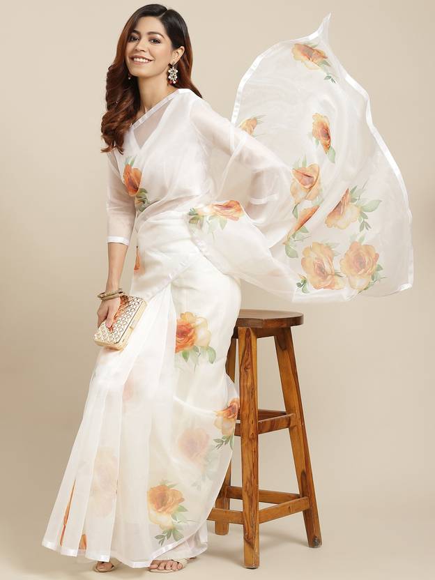 Fabric:: Saree: Organza, Blouse: Poly Silk || Work: Digital Floral Print || Saree Length: 5.5 Mtr, Blouse: 0.80 Mtr