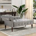 Soul Light Art Sheesham Wood Tantric Chaise Loung Chair Fabric Diwan (Finish Color -GREY, Pre-assembled)