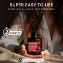 Experience the rich, warm fragrance of mahogany, with its deep, woodsy notes and subtle hints of spice. It creates a cozy, relaxing atmosphere, perfect for adding a touch of sophistication and comfort to any space. It has a Top Note – Fresh apples, green apples, Caramel, Middle Notes - Mahogany, Coconut and Base Notes – Warm Vanilla, Patchouli. One fragrance diffuser glass bottle, 50 ML (1.69 fl oz) mixture of essential oils, perfume & stabilizers with 5 ratan sticks. Adjust the amount of aroma released by adding or removing the sticks. It's easy to use, simply remove the cap and plastic plug, keep the bottle upright, and insert the reed sticks. Adjust the number of sticks to control the fragrance intensity. Enjoy a lasting aroma for upto 40 days, depending on room size and temperature. Once the reeds absorb the fragrance, they’ll gently spread the scent throughout the space for weeks. Our reed diffuser serves as both an air freshener and stylish décor for any indoor or outdoor space, perfect for your home, office, bedroom, kitchen, or bathroom. This reed diffuser is perfect for gifting on any occasion, whether it's Christmas, thanksgiving, birthdays, housewarmings, dinner parties, new year's, or as a thoughtful thank-you gift. Crafted with safe, high-quality ingredients, our reed diffusers are toxin-free, phthalate-free, cruelty-free, and meet IFRA standards for safety and quality.