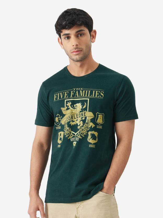 The Souled Store Graphic Print Men Round Neck Green T-Shirt