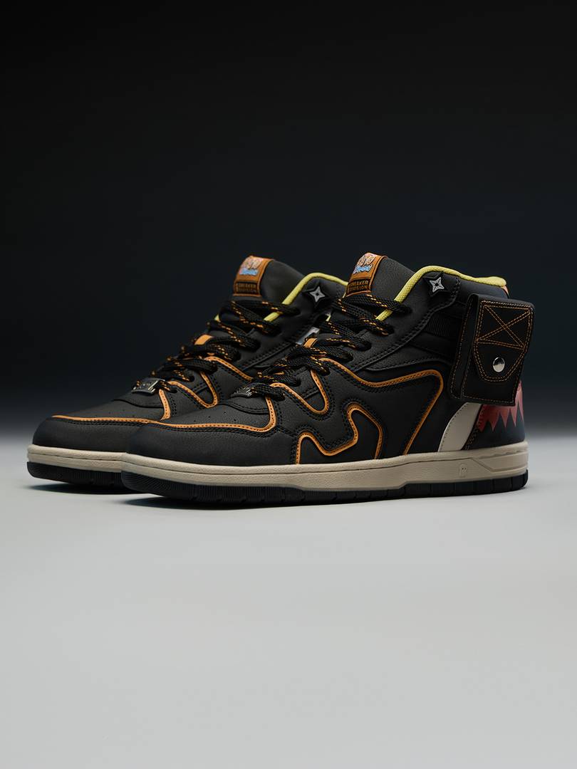 Unleash your inner ninja with these officially licensed Naruto Sneakers for Men. Inspired by Sage Mode, these high-tops feature a bold black & orange design, a unique removable utility pouch, and custom Leaf Village hardware. Crafted from synthetic leather, they offer a comfortable regular fit for any mission.