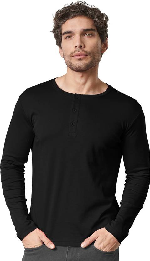 The Souled Store TSS Originals Men Solid Henley Neck Pure Cotton Black T-Shirt