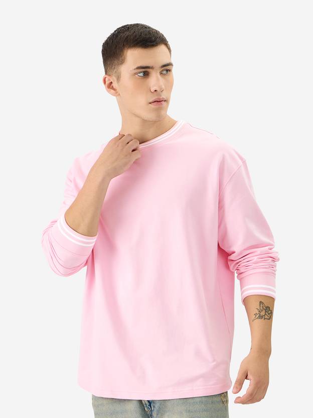 The Souled Store Solid Men Round Neck Pink T-Shirt