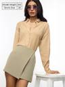 These skorts combine the elegance of a wrap skirt with the practicality of shorts. Made from durable polyester twill, they feature a high-rise fit and asymmetrical wrap front. Perfect for casual outings, they offer a clean, minimalist design for versatile styling.