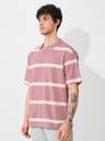 The Souled Store Striped Men Polo Neck Beige T-Shirt