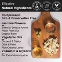 Ingredients like Jasmine, Coconut, castor & olive oil along with natural glycerin in the soap give you baby-soft skin without stripping the skin off its natural moisture.