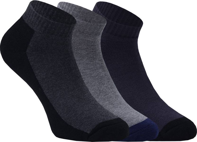 Pack of 3 pairs, available in Black, White, Grey, and Multicolor.