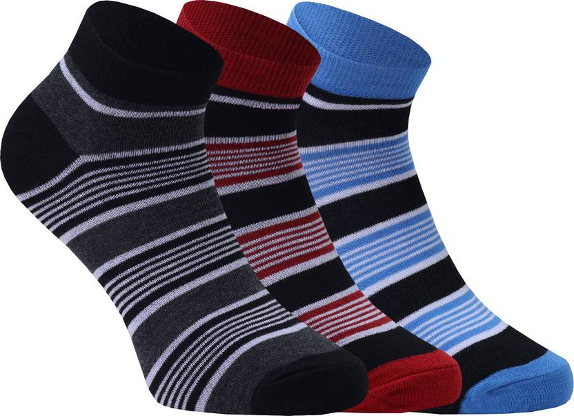 Pack of 3 pairs, available in Black, White, Grey, and Multicolor.