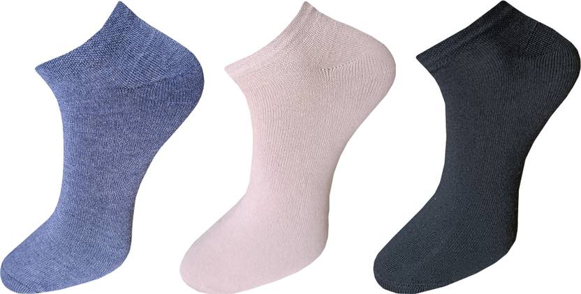 Pack of 3 pairs, available in Black, White, Grey, and Multicolor.