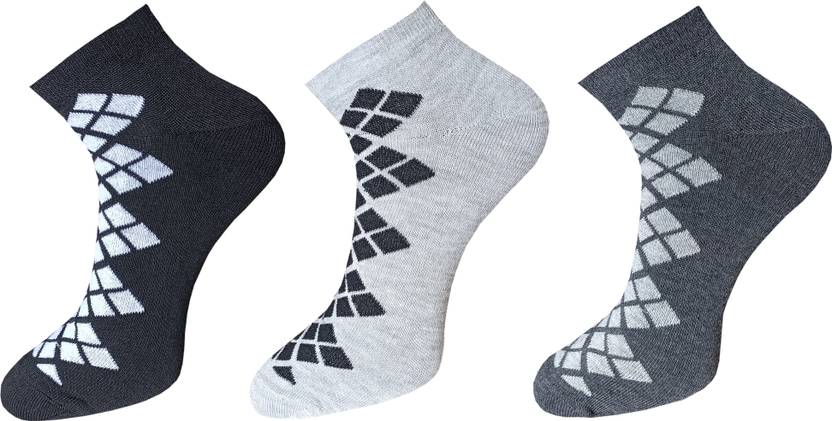 Pack of 3 pairs, available in Black, White, Grey, and Multicolor.