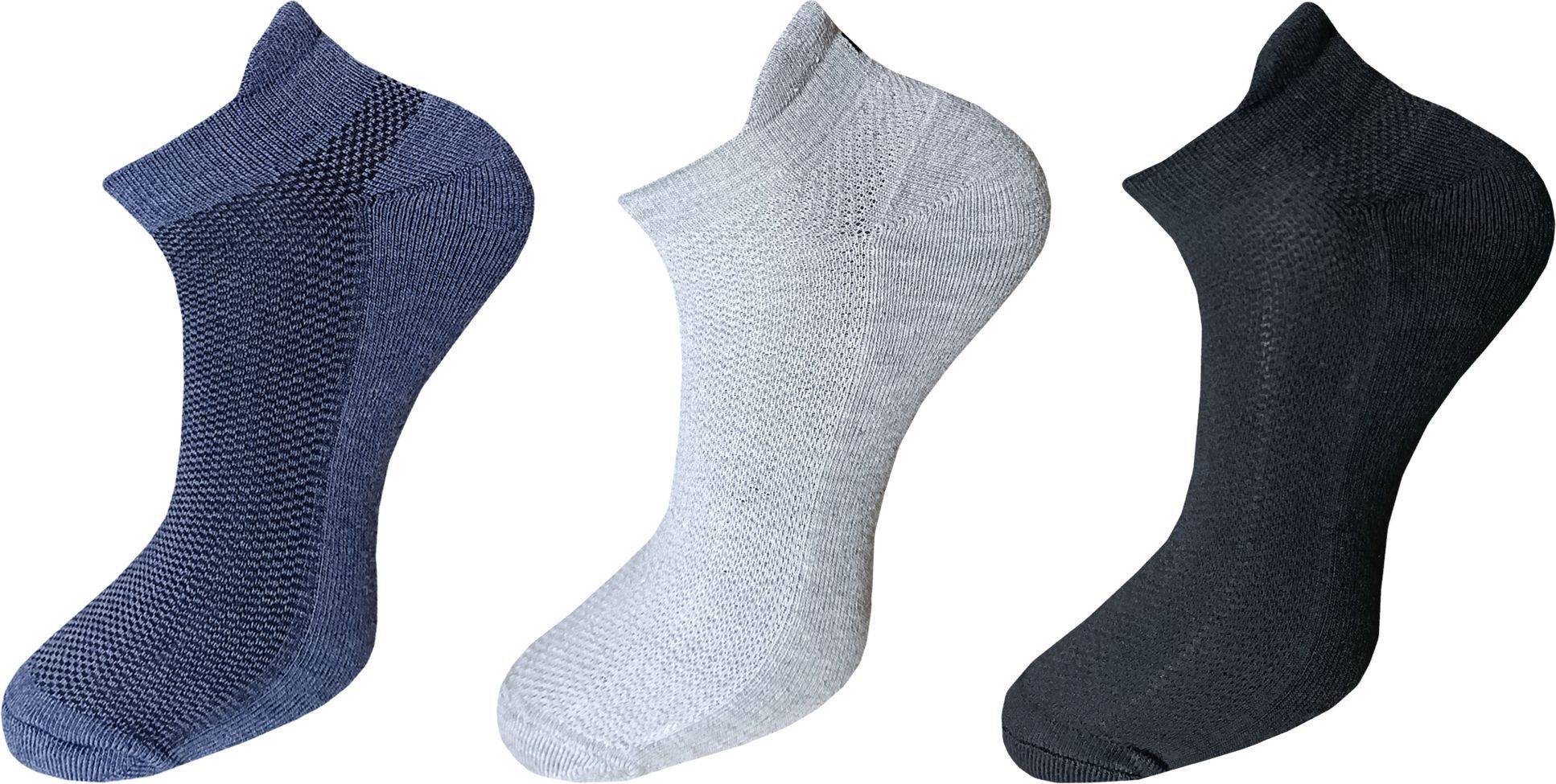 Pack of 3 pairs, available in Black, White, Grey, and Multicolor.