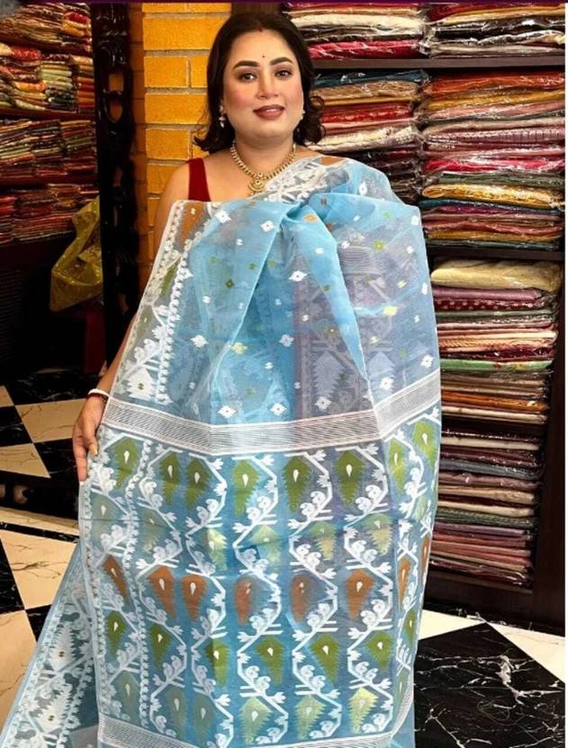 New premium and high quality , comfortable Soft Dhakai Jamdani Saree with blouse piece drapes that is super stylish and pretty.