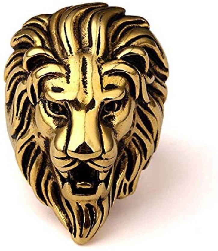 SP Creations Stainless Steel Roaring Lion Head Unique Design Ring for Men and Boys In Golden Stainless Steel Ring