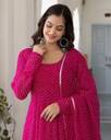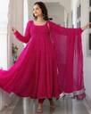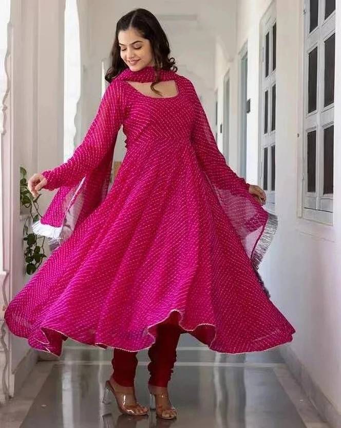 Fabric: Soft Georgette, Breathable & comfortable. Design: Anarkali suit Not Pant Including Floral Prints & Matching Dupatta. Fit: Flared silhouette, three-quarter sleeves, waist belt for a stylish touch. Occasion: Perfect for festivals, weddings, parties, and casual wear.