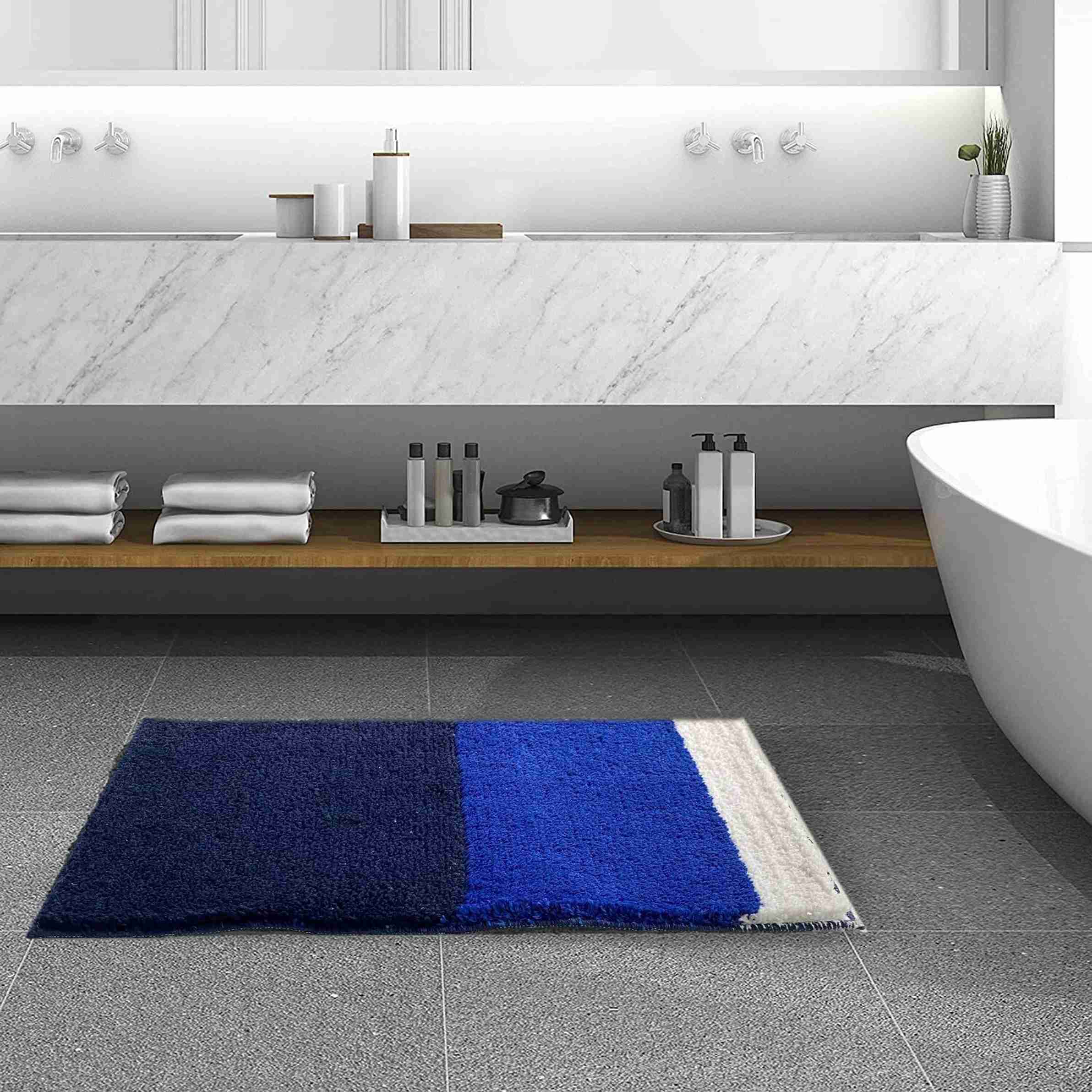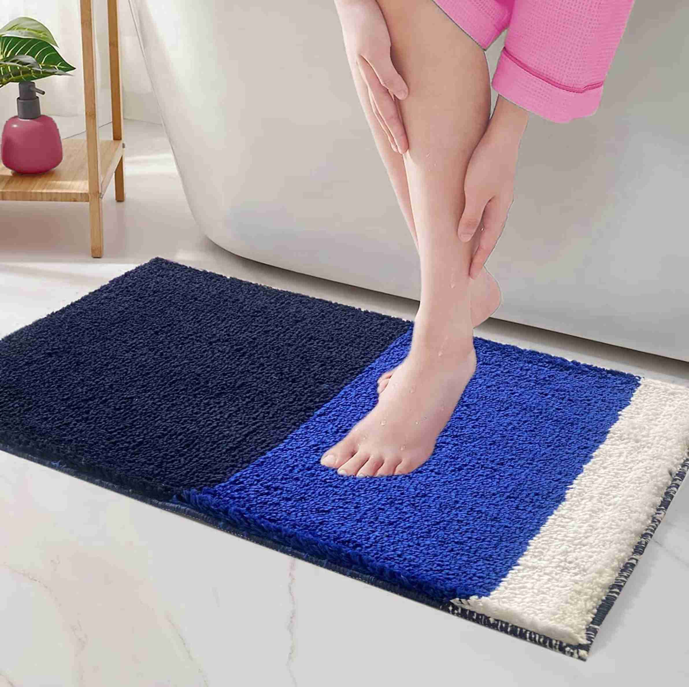 Microfiber Door Mat (Strip Doormat for Home Entrance|AntiSkid Bathmat for Bathroom(40*60 cm) Blue, Small)