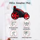 Kids' Racing Car with Flexible Steering: This vehicle can be driven left, right, forward, and backward. It can be driven from either side, swiveled 360 degrees, and driven through obstructions with ease. It turns into a dancing car as it reverses and rotates like a tornado during the quick movement.