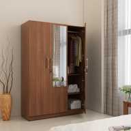 SPACEWOOD Engineered Wood 3 Door Wardrobe (Finish Color - WALNUT RIGATO, Mirror Included, Knock Down)