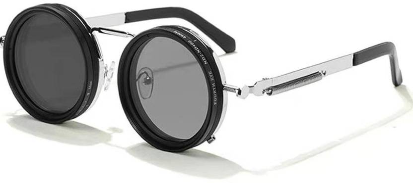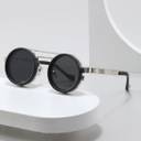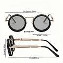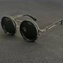 Vintage Round Steampunk Sunglasses, Metal Frame, Black and Gold Adjustable Lens Color