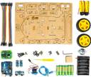 The combination of 4 robotics kits in one to make the child challenge his logic and develop an operational robotic kit. Here the combination of Obstacle Avoiding Robot, Edge Avoiding Robot, Maze Solving Robot and Light following Robot with respective sensors mounted on the kit. In the back end the child will be learning 4 different codes for the specific operations. Combination on the sensors and transfer of the signals plays a vital role in this kit as this is very fascinating observing that the Robot developed by your child is performing tasks. The Robot itself detects the limits/ area of operations for the table or wall and changes its path to avoid falling/hitting. The development of this kit from the point of child operation is so simplified that for doing the connection you need to follow the step by step procedures of the manuals, which is provided inside the box. This manual also has Assembling photos of the kit and the codes with instructions just to simplify the understanding and ease of operation. Making a bot makes a child feel happy and proud, helps in improving their academic performance as well as confidence thereby they get great interest in technology, electronics, robotics and circuits. The DIY kit raises fun in their learning which contains BO wheels, Ultrasonic Sensor, Servo Motor, IR sensor, L293D motor Driver module, robot chassis, batteries, Caster wheel, jumper wires. This kit will Immerse yourself in the realm of robotics and learn how to build your own robot. As a result, children become fascinated with STEAM (Science, Technology, Engineering, Arts and Mathematics) Learning addon with robotics and circuits. The kit includes all of the sensors and actuators necessary to execute the experiments. Inside the box is a detailed manual that will assist you in learning the fundamentals of robotics. Circuit schematics, step-by-step photographs, and videos in the form of QR codes are also included in the manuals to aid with the assembly of the k
