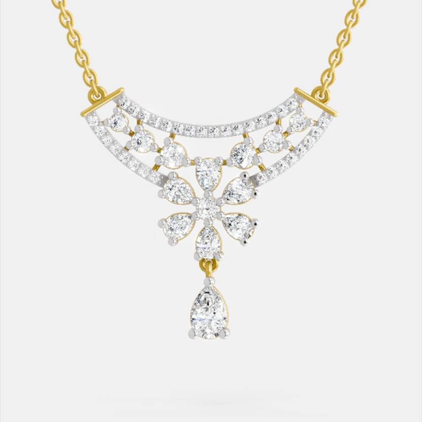 Diamond Type: Lab Grown Diamond, Total Diamond Weight: 2.06 Carat, No. of Stones: 46, FG Color, VS Clarity, Certification: IGI Certified Diamond Shape: Round & Pear, Metal Color: Yellow Gold, Closure: Lobster, Gold Weight: 4.41 gram. At Sparkles, we’re committed to delivering a transparent and seamless shopping experience. Our goal is your complete satisfaction — bringing you not just stunning diamond jewelry, but an experience filled with trust, joy, and integrity.